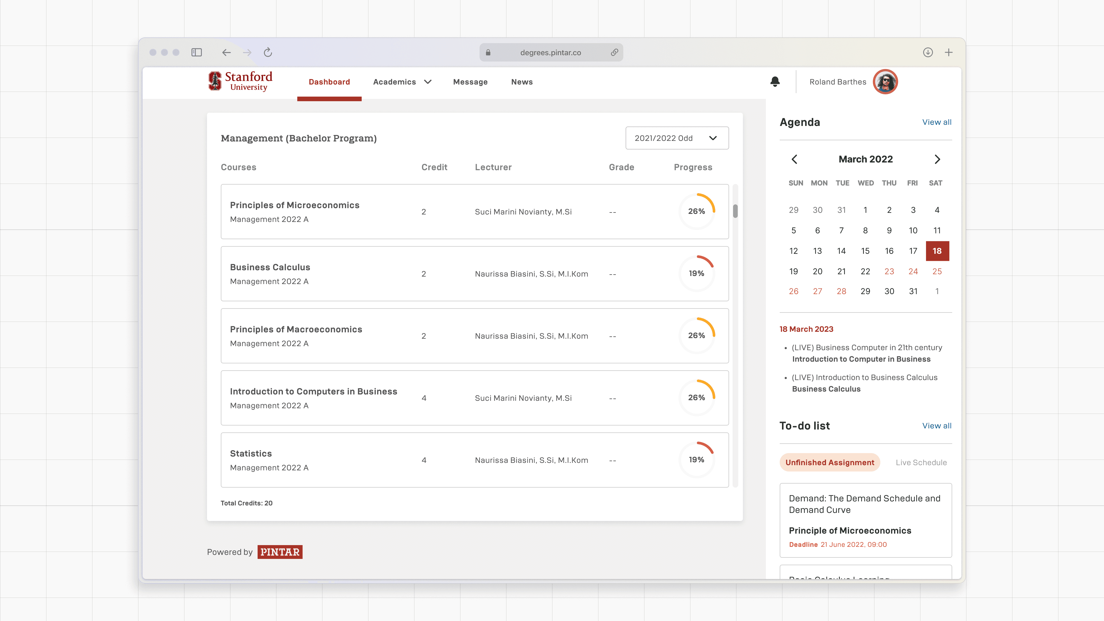 PINTAR Degrees enables working professionals to earn accredited degrees from reputable universities online. The student dashboard is the central hub where students manage all their learning activities. As the most frequently accessed page, redesigning it was essential to establish the new brand and improve user experience.