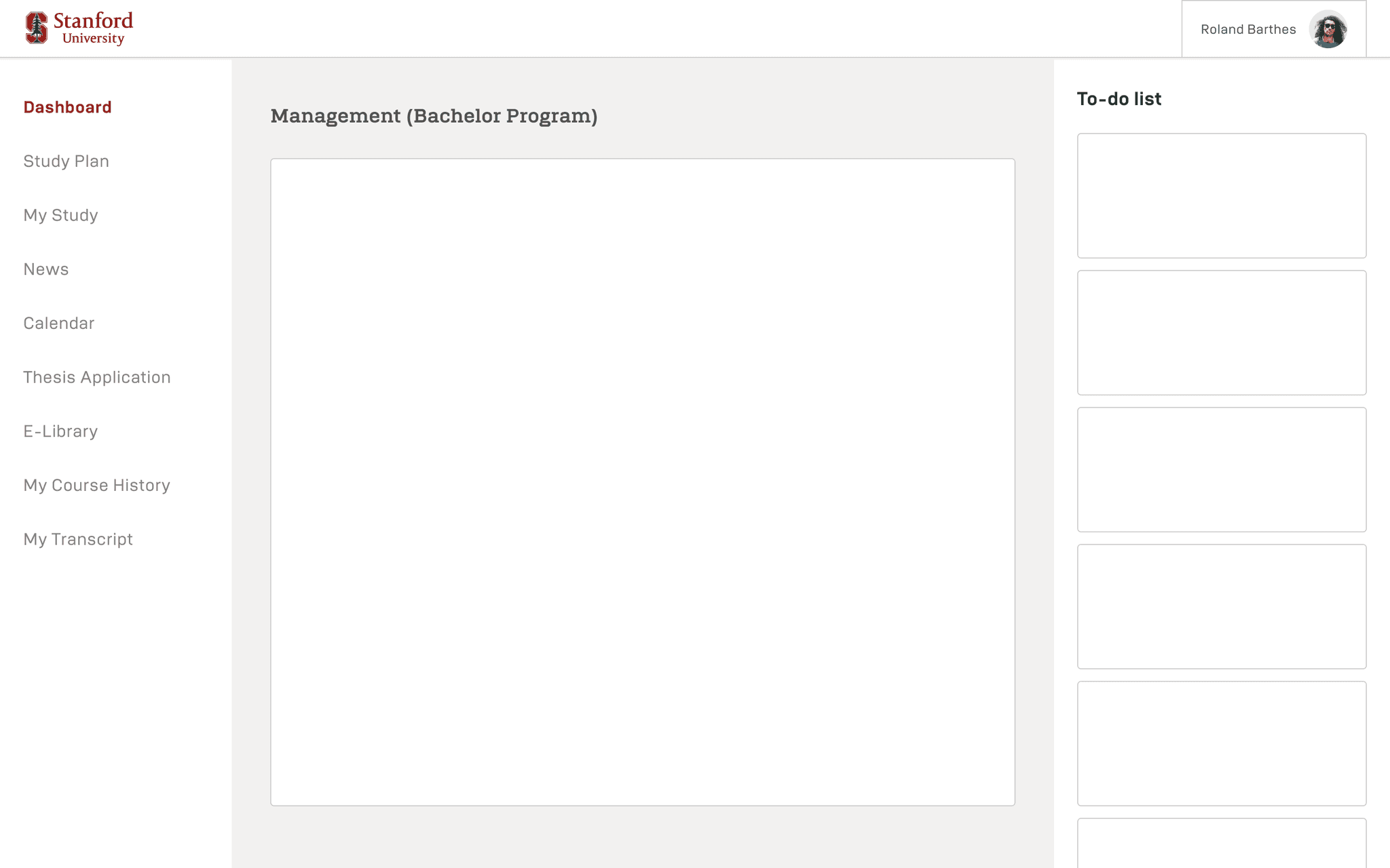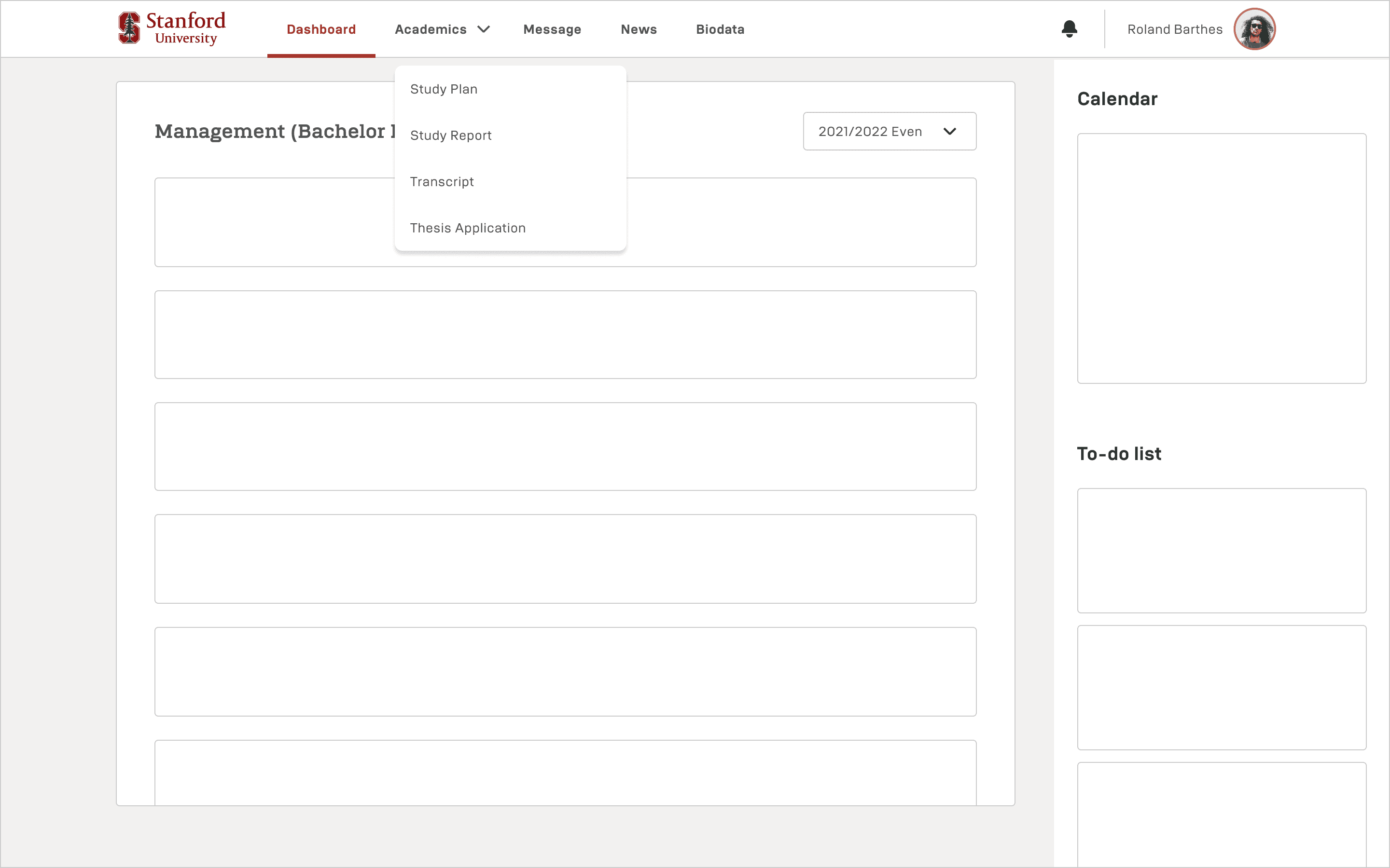 I started my layout exploration for the new dashboard. My first idea was to keep the menu on the left side bar to always be visible, to keep student aware of their status in the dashboard.