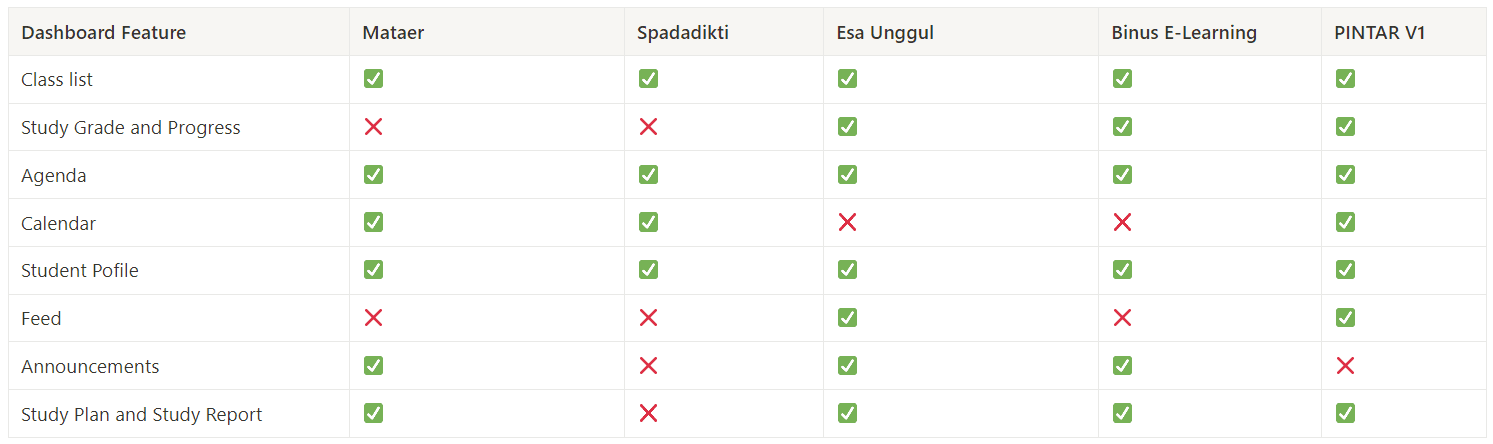 I did competitive research to our competitor to see what feature they have on their student dashboard